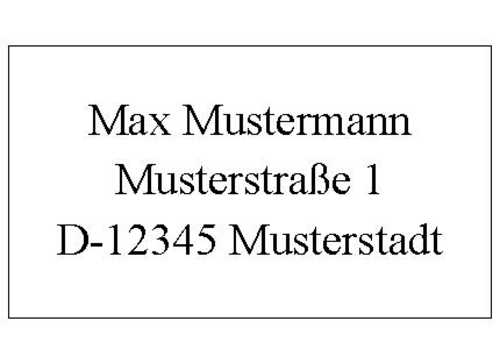 Sie schicken uns Ihre fertigen PDF oder Word Datei. Alternativ schicken Sie uns die Daten, die auf den Aufkleber stehem sollen.