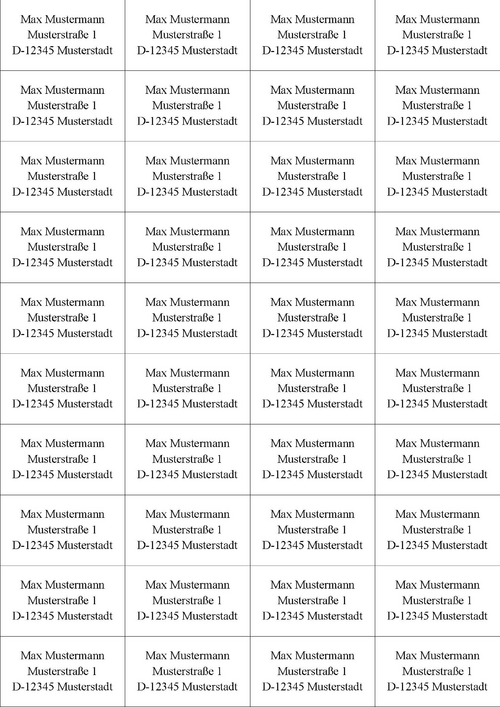 Jeder Aufkleber hat einen nicht bedruckbaren Rand von 5 mm